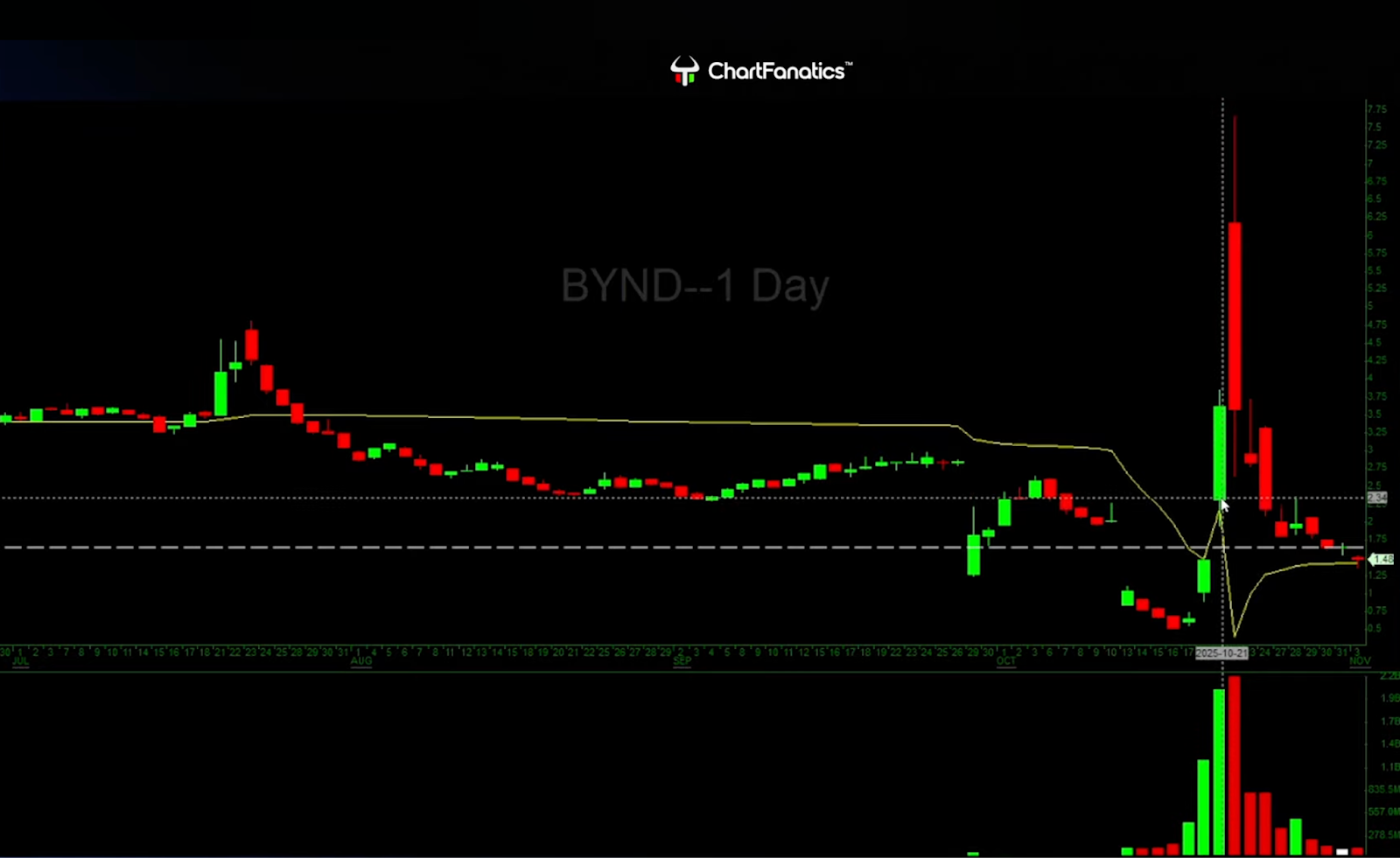 A stock can gap up, sell off heavily, and still appear green on the day. The true shift occurs when price breaks below the previous close. That is the psychological trigger.