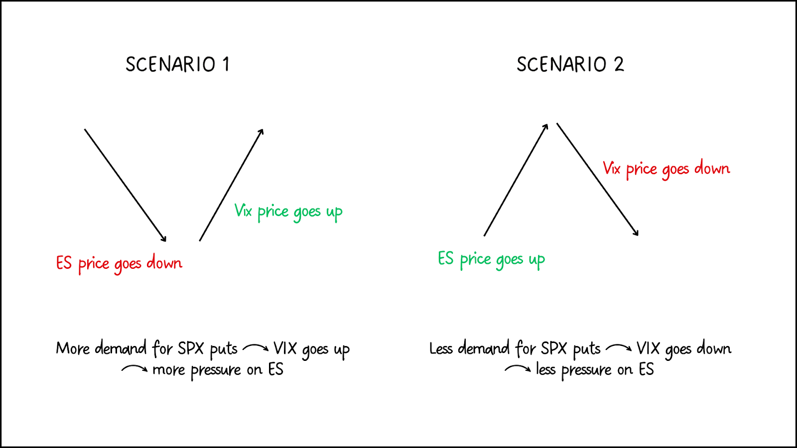 - More demand for SPX puts → VIX goes up → more pressure on ES