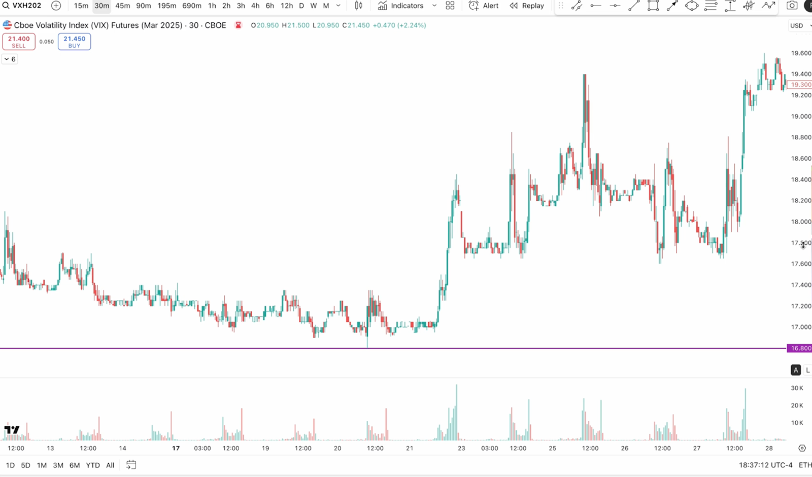 Because VIX pricing comes directly from SPX options, it gives you a live reading of how much fear or stress exists in the market. And since ES/NQ move closely together, knowing what the VIX is doing lets you understand whether a move in ES or NQ has real power behind it — or if it’s likely to fail.